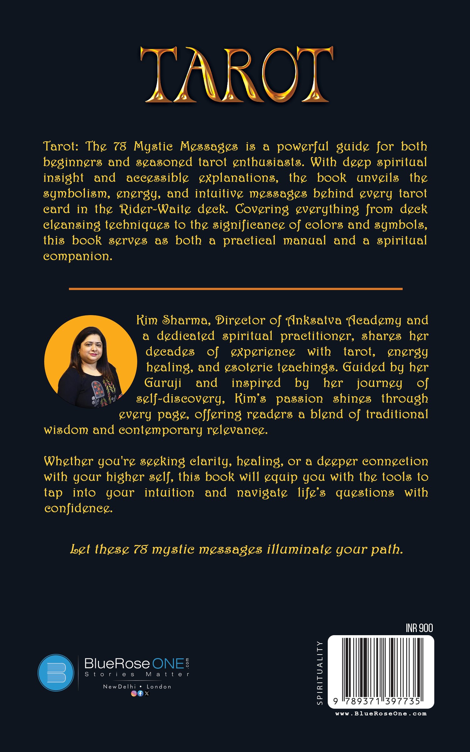 Whether you are a beginner exploring tarot for the first time or a seasoned reader deepening your practice, this book will help you connect with the spiritual essence of each card. More than a tool for divination, it presents tarot as a mirror for self-reflection, transformation, and empowerment—a gateway to understanding life’s mysteries and your soul’s journey.